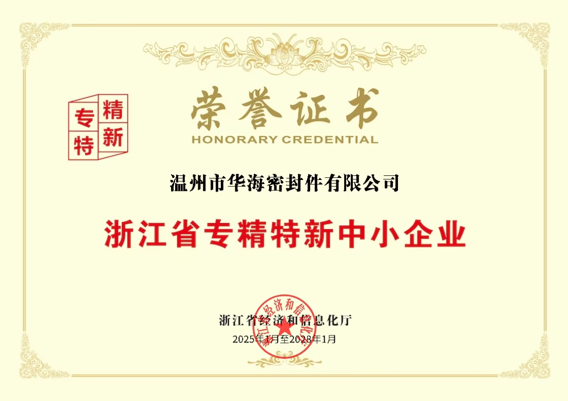 溫州市華海密封件有限公司獲得“浙江省專精特新中小企業(yè)”榮譽(yù)證書